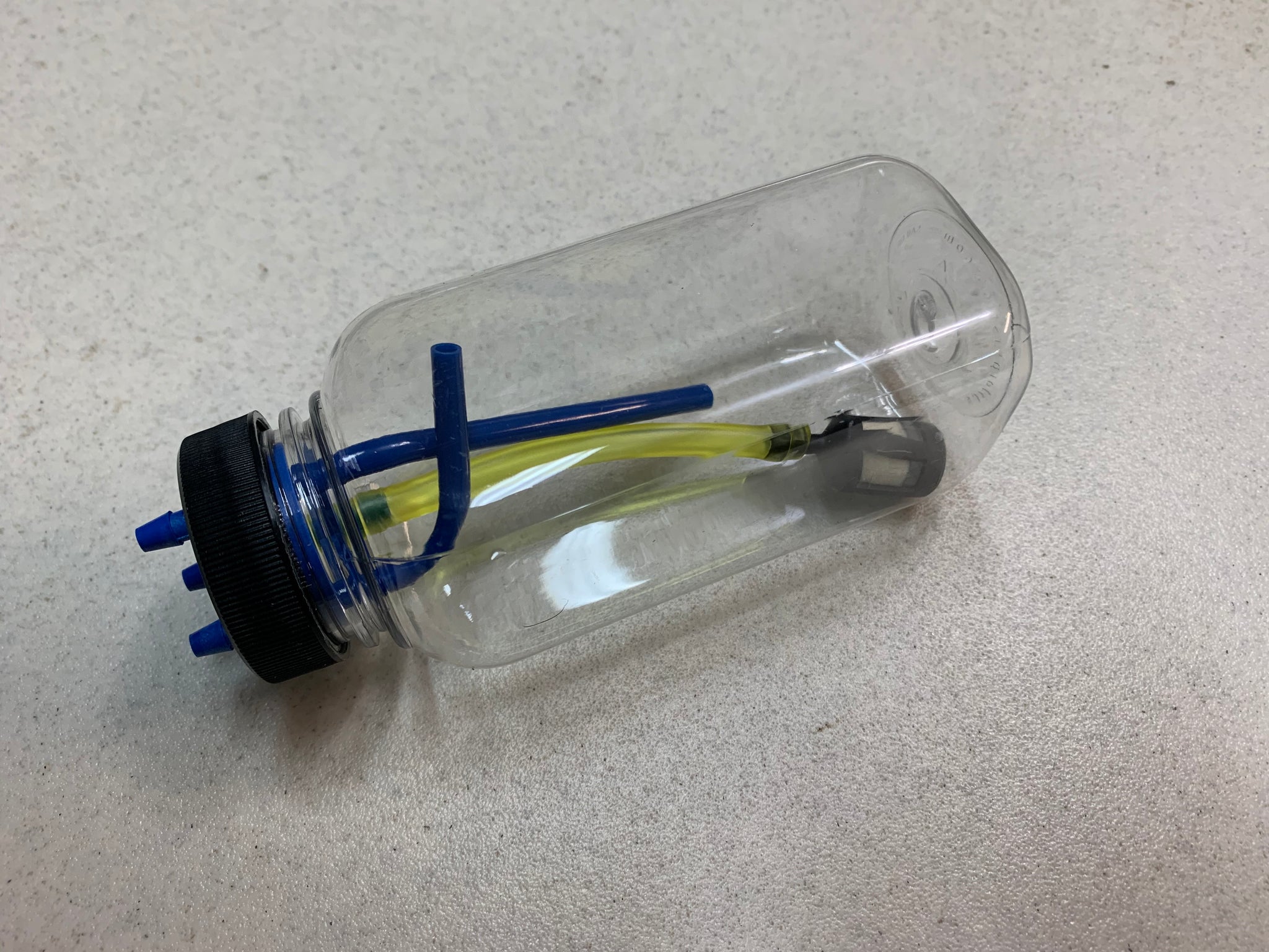 This is the best solution for a 1/4 fuel tank that we have found. If you are tired of leaking stoppers and bending brass lines, this tank setup is for you. Totally clear and a QSAC legal 8oz capacity.